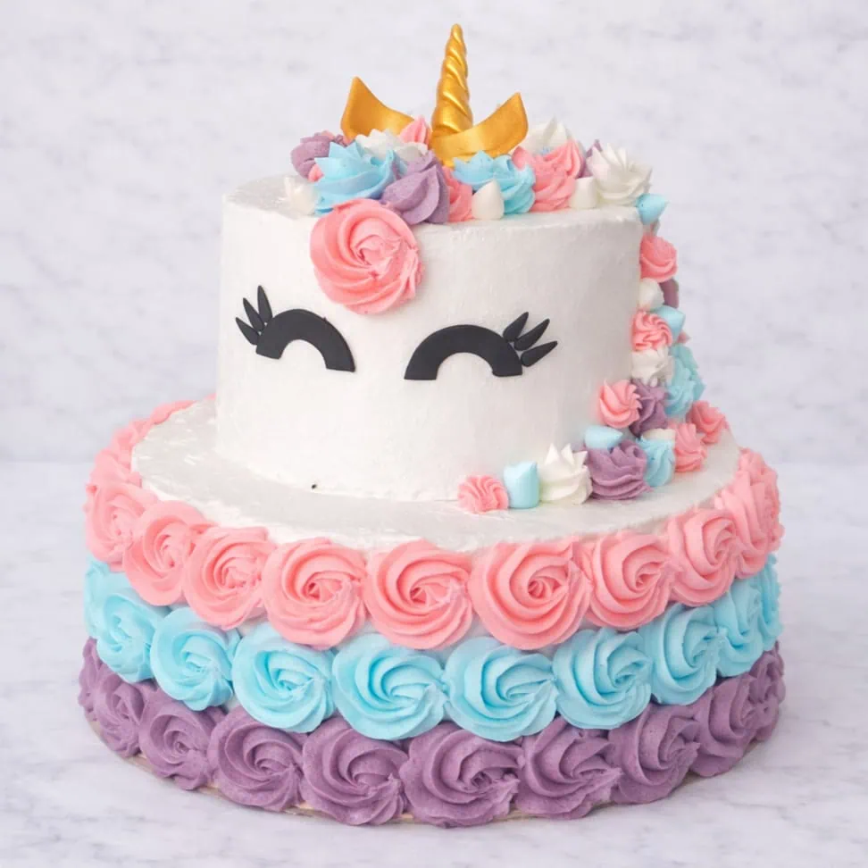 Exquisite Decoration: Adorned with buttercream rosettes and a handcrafted unicorn horn for a truly magical appearance.