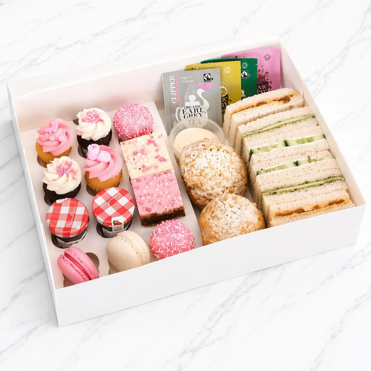 Gourmet Tea: Complement your treats with two premium tea bags, selected to enhance your high tea experience.